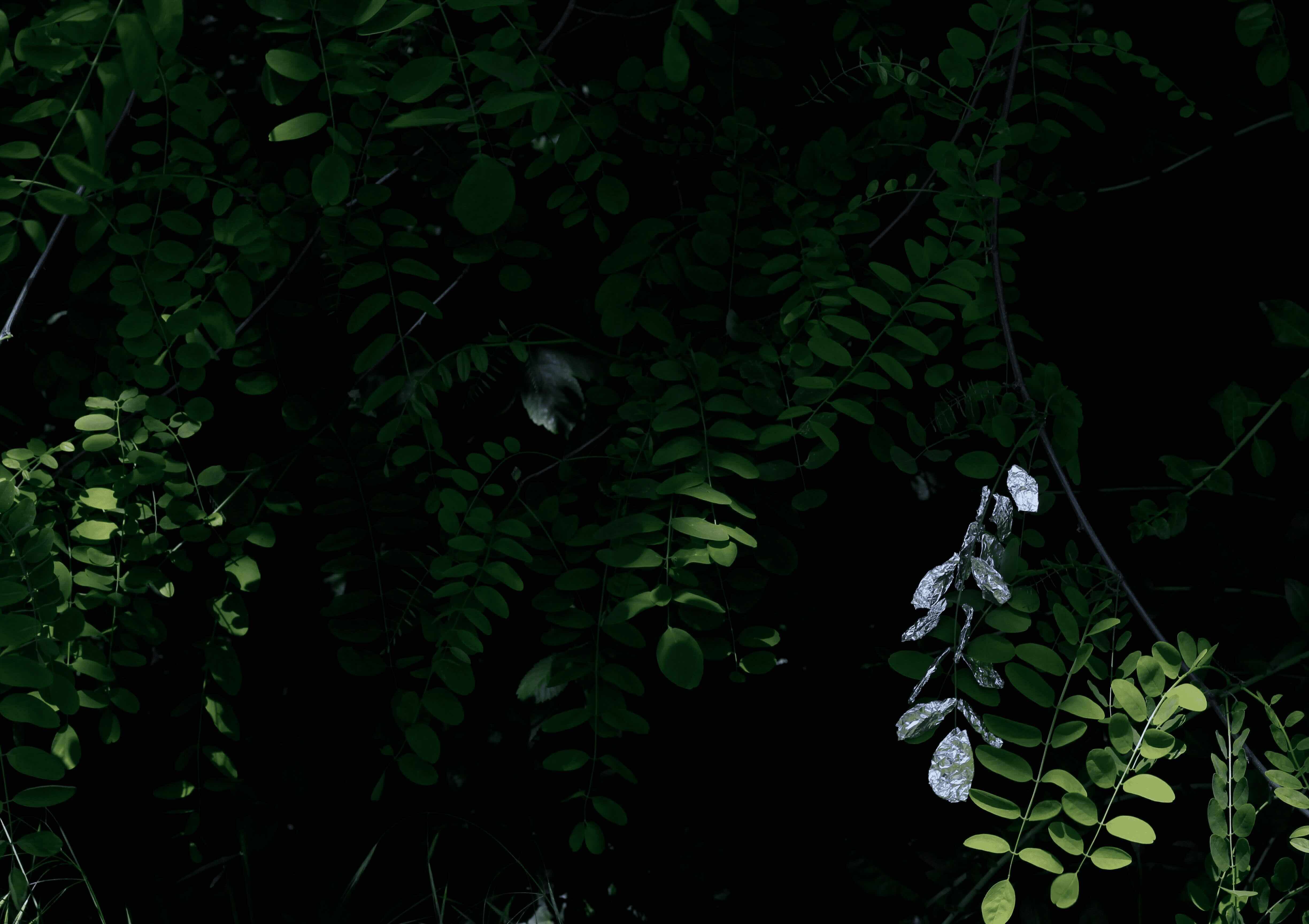 Through the combination of natural and artificial materials, the Foliage photography series explores the moments when familiar objects look unfamiliar. The leaves and branches are wrapped in aluminum foil to maintain the shape of the natural object, but the reflective metal surface is intended to show a different natural image than before. We usually interpret things based on our familiar experiences, memories, and patterns rather than seeing them as they are. By adding artificial materials onto natural objects, I tried to show how familiar forms of nature can be perceived as new images through small interventions and changes.