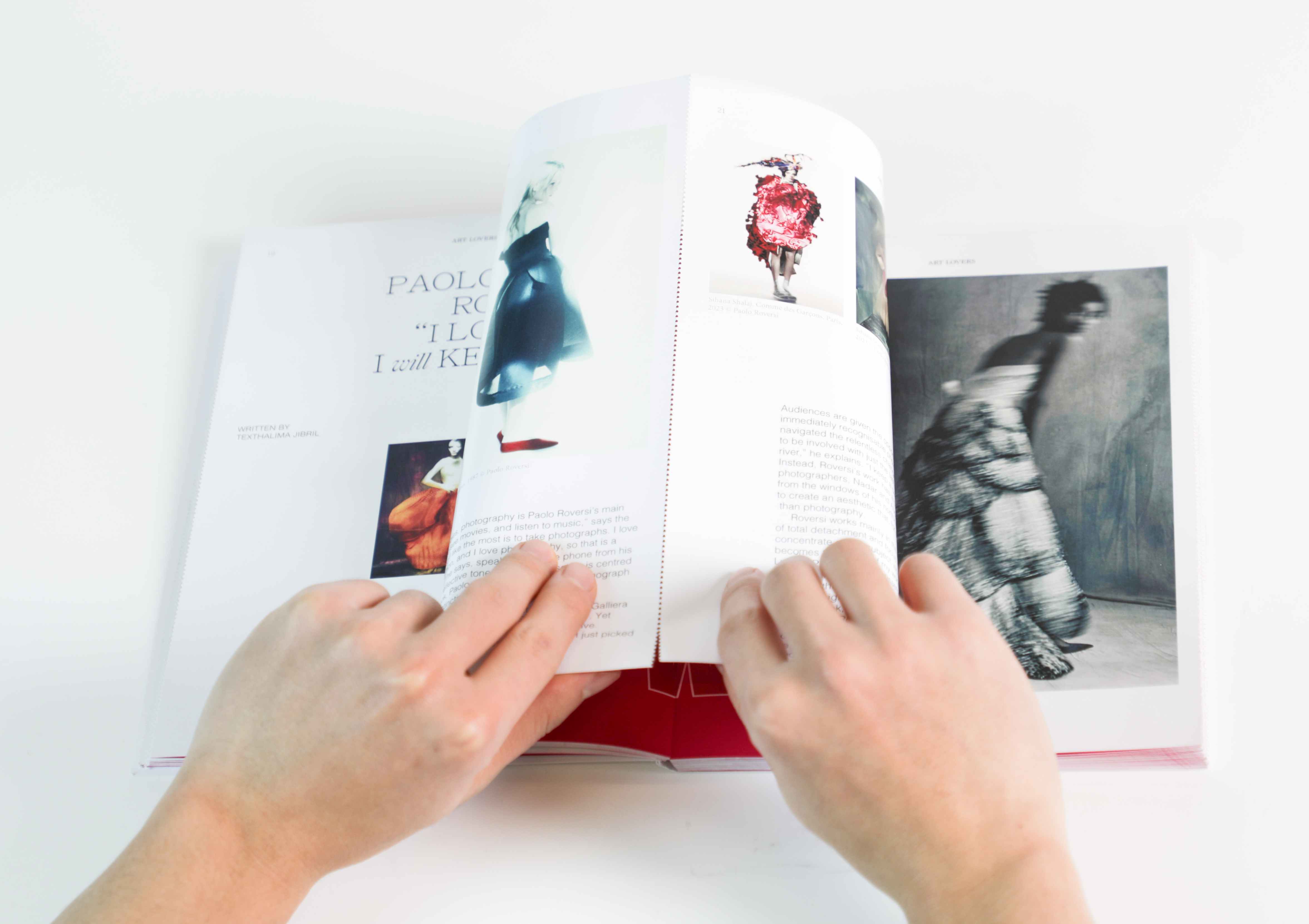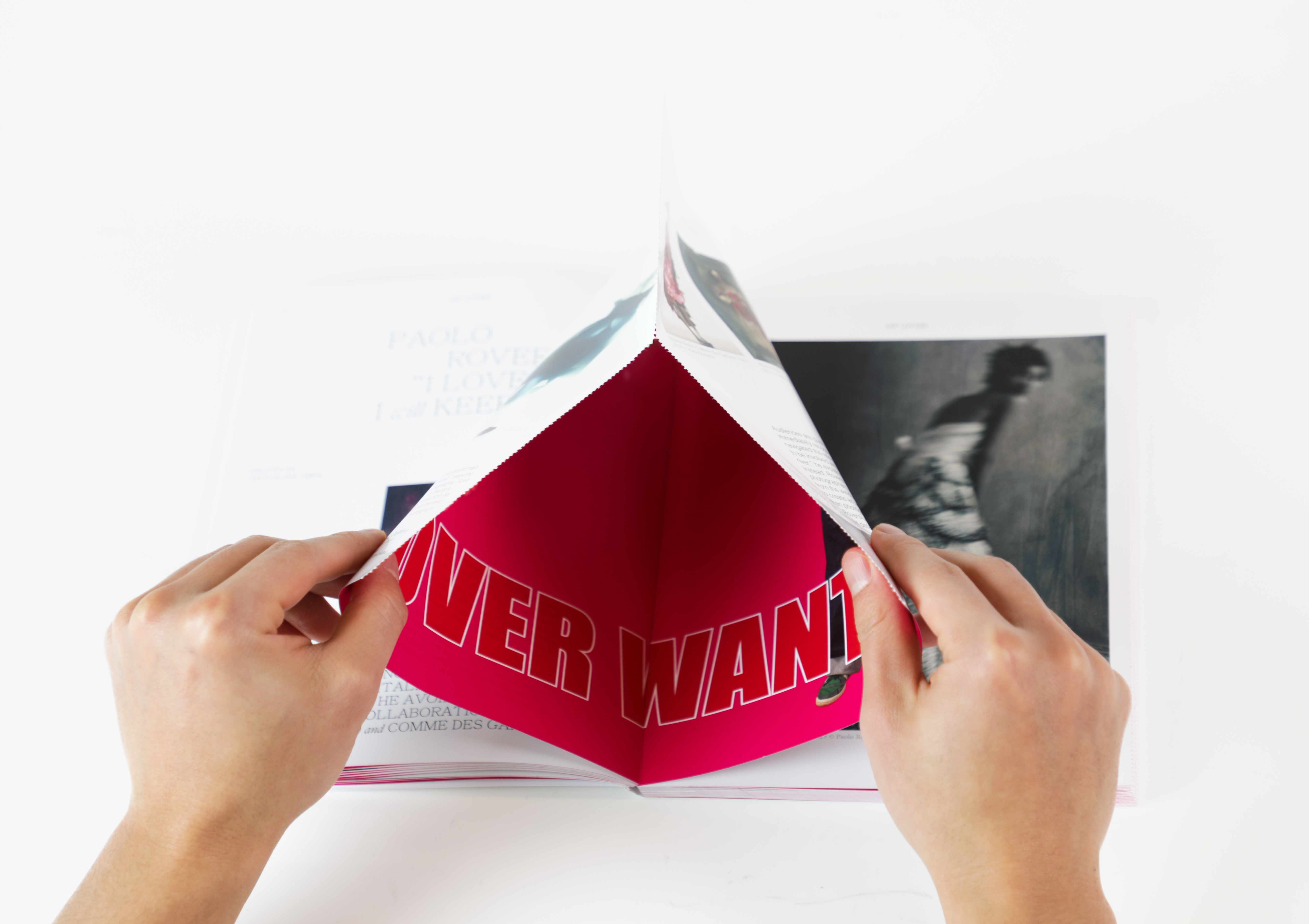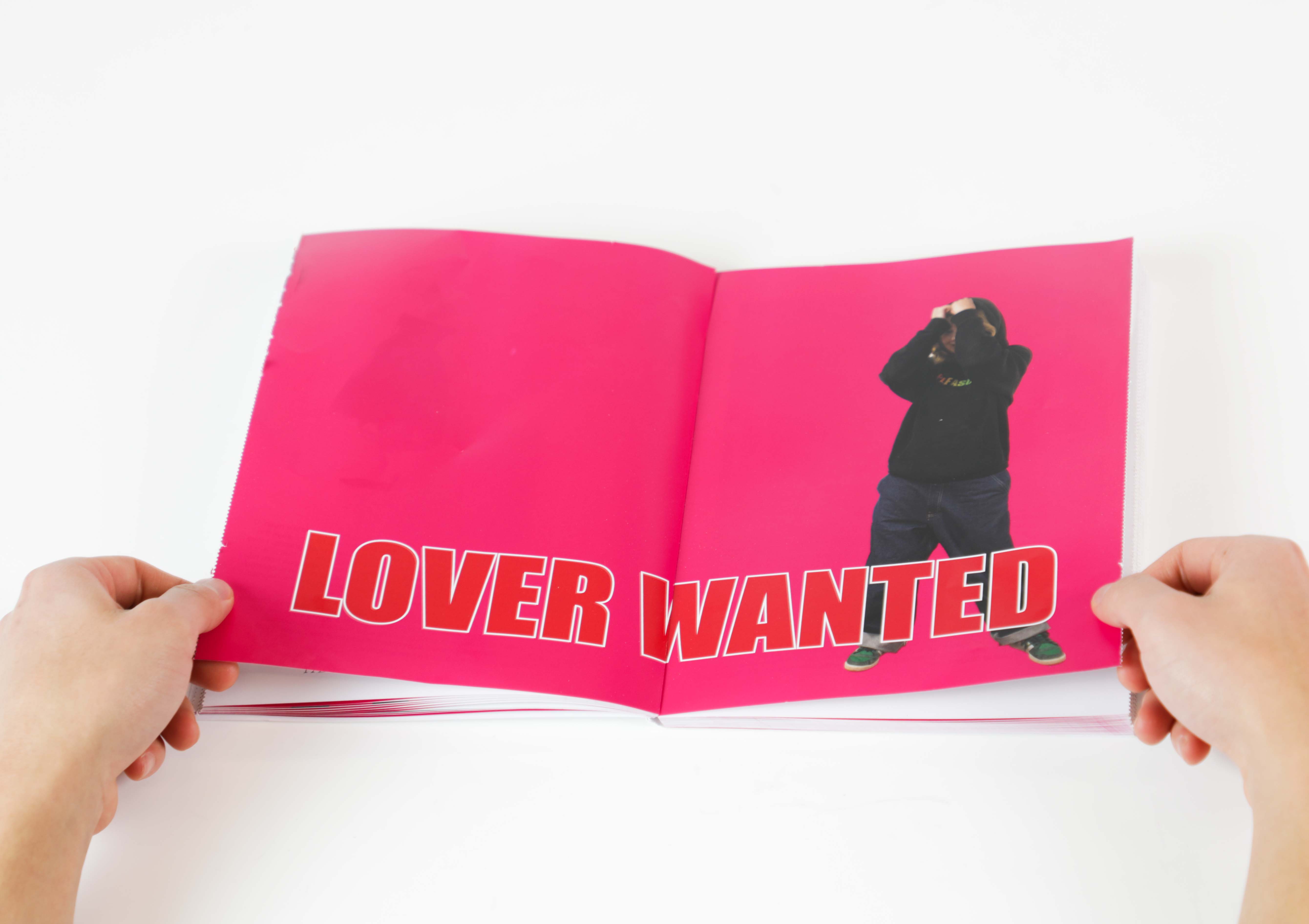 The Lovers is a reinterpreted magazine by Another Magazine. The Lovers explores the theme of love from multiple perspectives and consists of three sections: Art Lovers, Pop Culture & Lovers, and Fashion Lovers and each section explores the meaning and form of love through different areas of art, pop culture, and fashion. Throughout the magazine, personal ads of graphic design students looking for partners are embedded between the pages. These ads are organized in a form that rips some pages of the magazine, allowing the reader to physically experience the magazine and discover love-seeking messages.